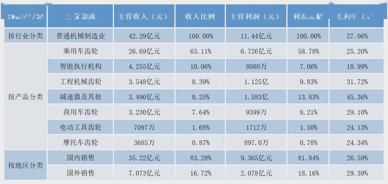 经过多年发展,双环传动齿轮产品已覆盖车、机器人、工程机械等多个领域。其中,乘用车齿轮是收入的主要来源,2025年上半年占比达63.11%,工程机械齿轮占比8.39%,商用车齿轮占比7.64%。